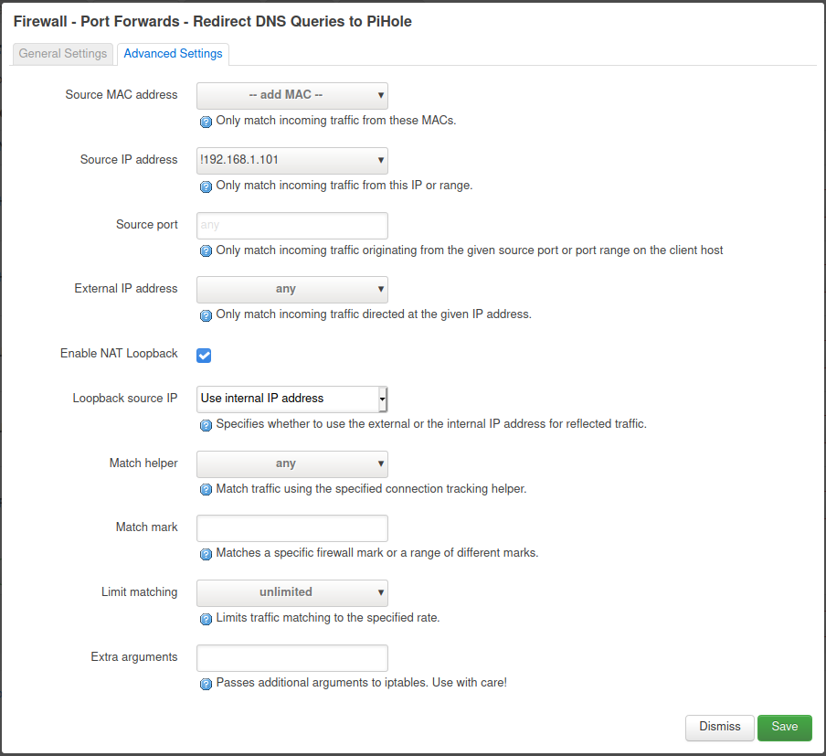 Which indicates that this rule should apply to all devices on lan except the PiHole.